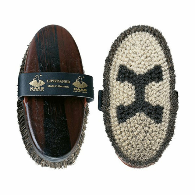 An exclusive horsehair mixture is used for this brush. The border is edged with longer black horsehair. The shorter bristles for gentle cleaning and the longer for removing dust and giving gloss.