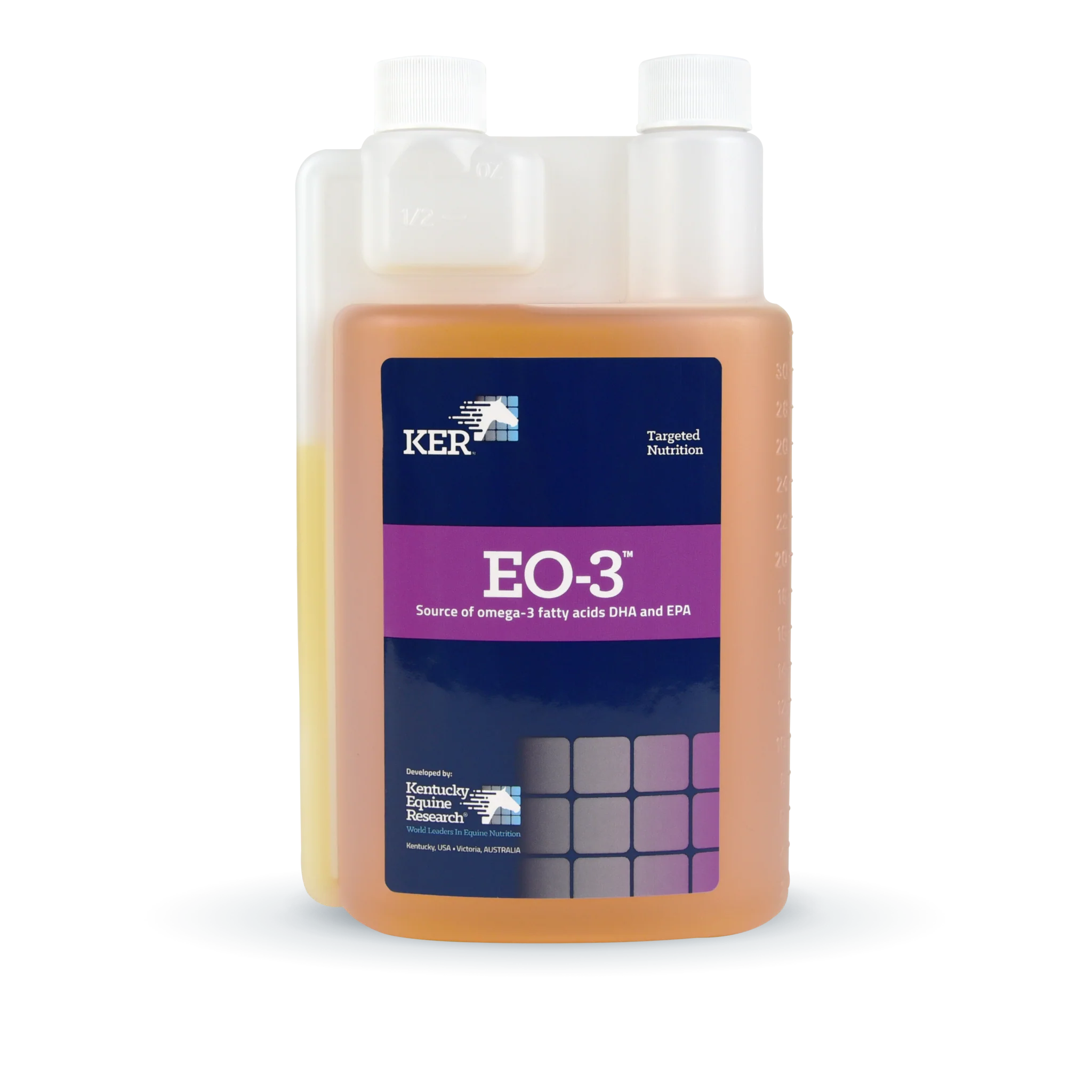 EO-3 is a rich source of the long-chain omega-3 fatty acids DHA and EPA in a palatable liquid form. EO-3 can be fed to all classes of horses, including foals, breeding stock, and performance horses to improve the critical ratio of omega-3 to omega-6 in the diet, provide preferential precursors for production of local hormones, and regulate gene expression to positively affect insulin sensitivity.