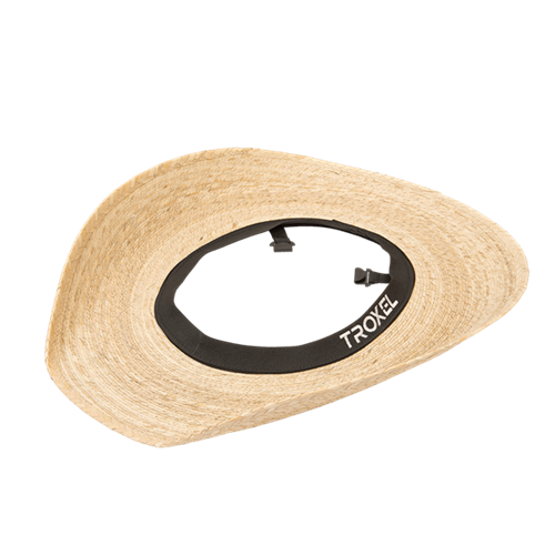 Instantly add full shade and sun protection to most Troxel helmet models with the New Helmet Brimmer™. Featuring a full 4 ½” wide genuine palm leaf brim with a patent pending helmet attachment system* that allows you to securely attach and remove the Helmet Brimmer™. Refer to Helmet Brimmer™ Size Chart to select size A or B for the helmet style and size that you have. *Helmet not included- featured on the Liberty Black ™ and Liberty Tan Duratec™.