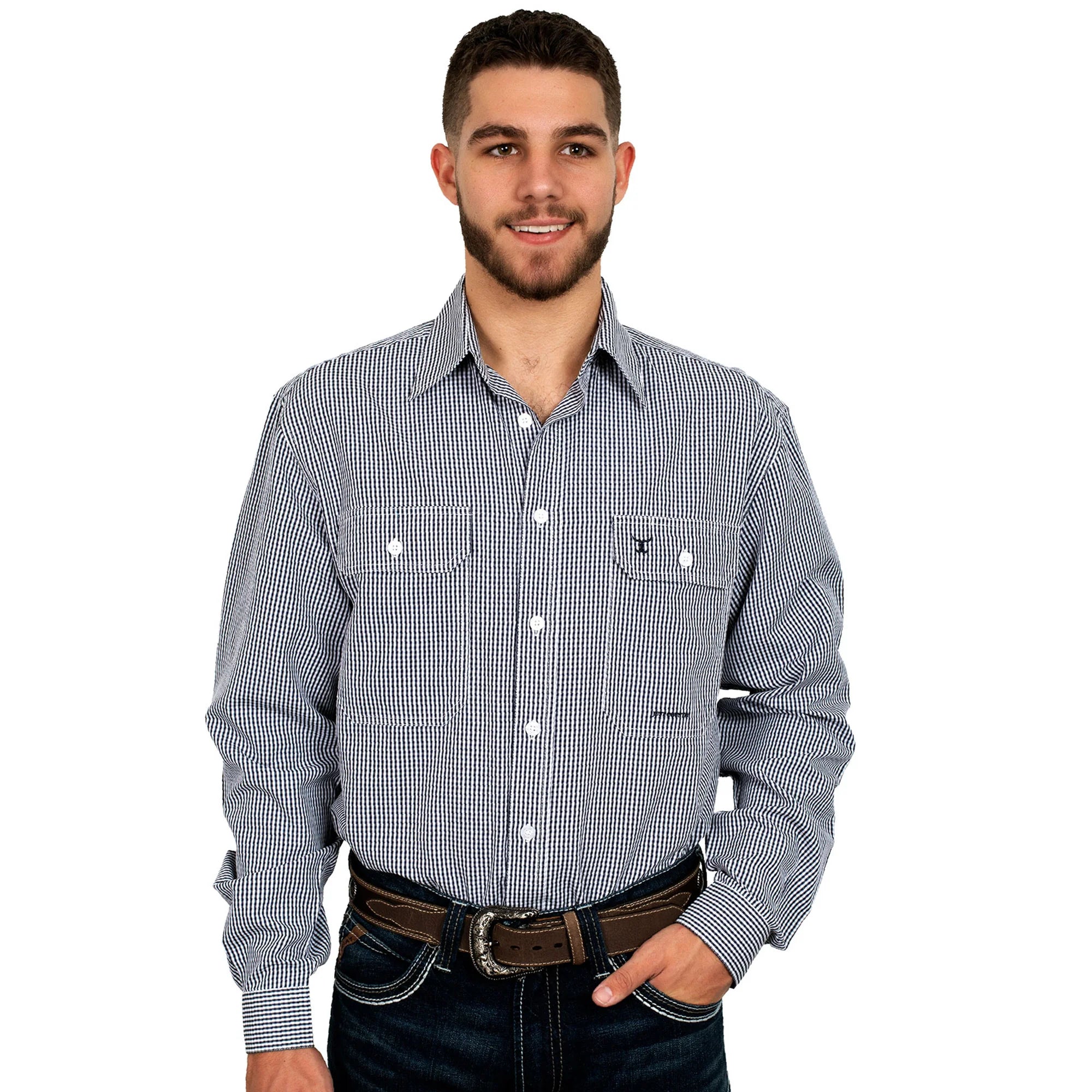 Built tough yet lightweight, this navy and white mini check shirt delivers practical functionality without compromising on style. Ideal for work, outdoors, or everyday wear.