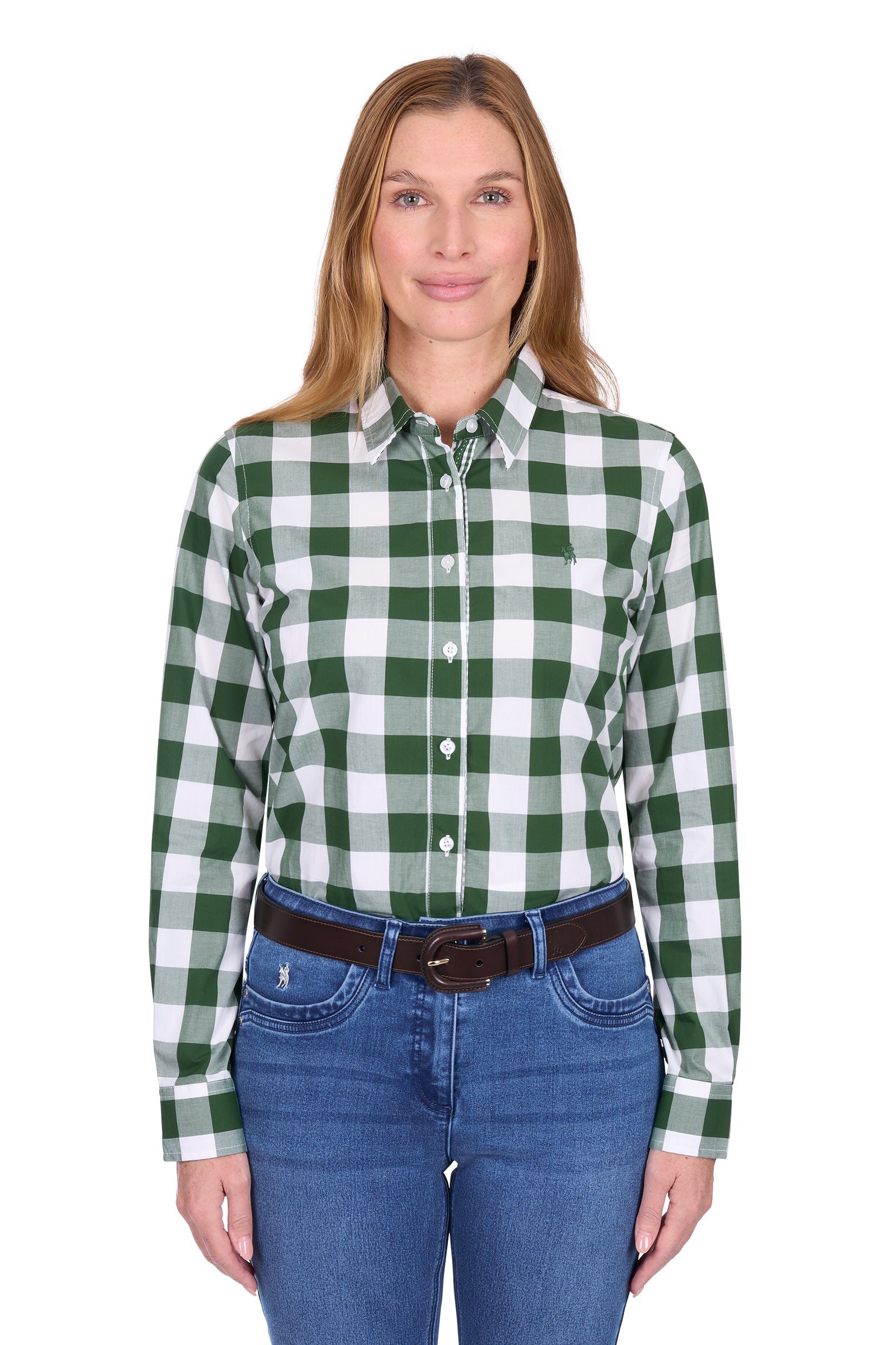 Available in sizes 8, 10, 12, 14, 16, 18, 20, and 22, this shirt offers a flattering fit for a variety of body types. Ideal for casual wear, country events, or layering under jackets, the Judy Long Sleeve Shirt combines traditional western charm with modern comfort and detailing.