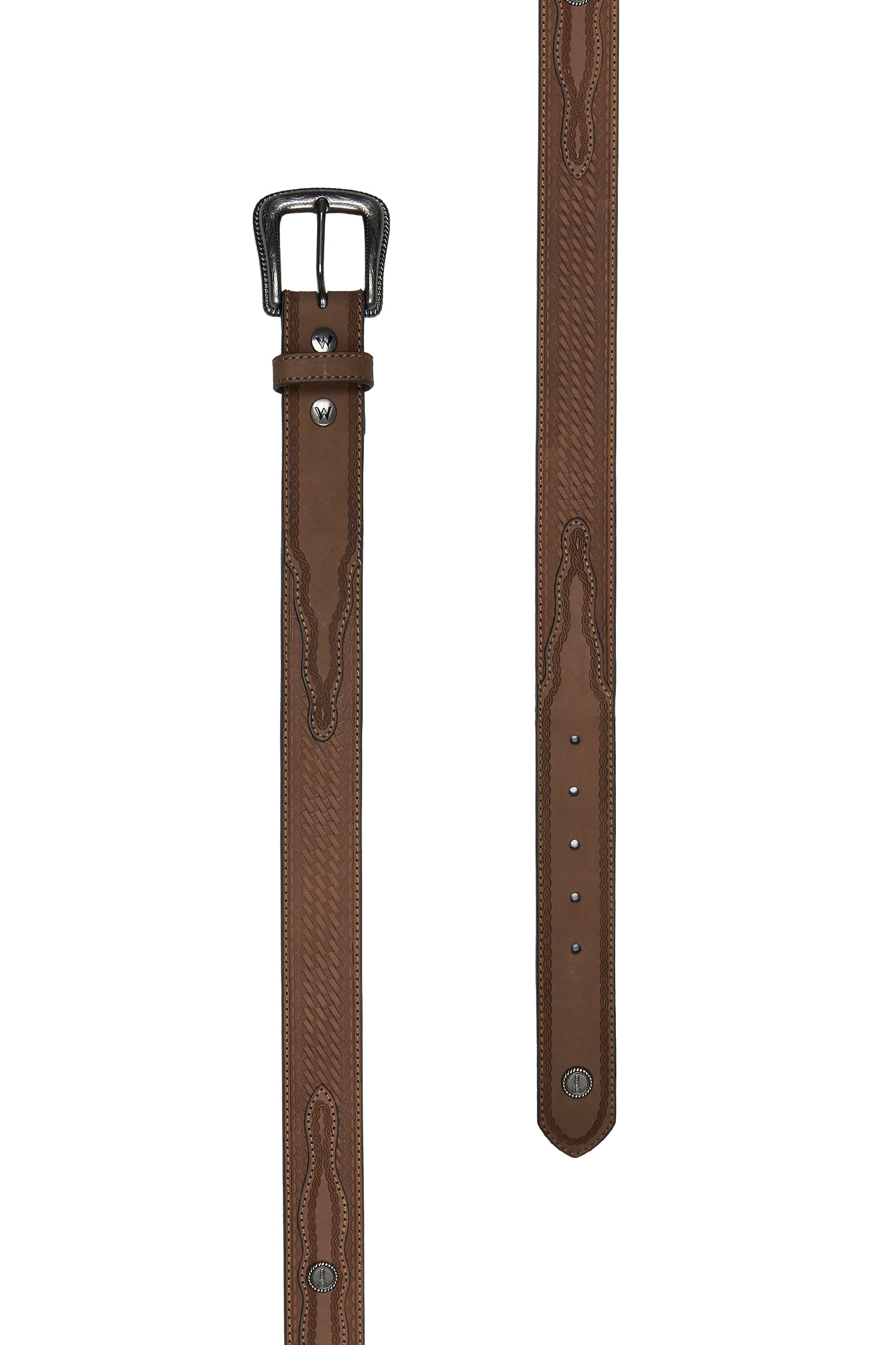 The Dale Belt (X6W1968BLT) is a premium western-inspired accessory crafted from genuine leather for long-lasting durability and classic country style. Its tooled leather strap features intricate detailing, giving the belt a refined and authentic western look that complements jeans, skirts, or dresses.