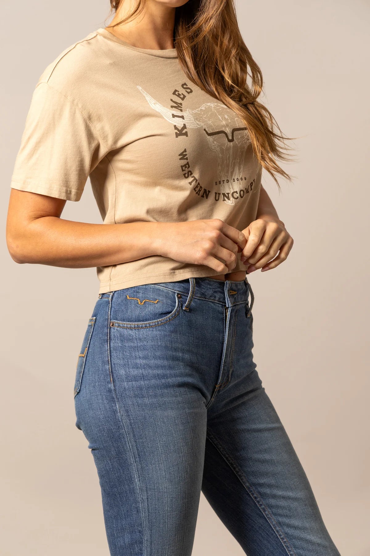 The Bison Skull Cropped Tee blends heritage and modern western style. Featuring a vintage-inspired bison skull graphic layered with the iconic Kimes Ranch logo, this tee delivers bold attitude and desert vibes in a clean, contemporary silhouette. Crafted from 100% ring spun cotton, it offers a soft feel, breathable comfort, and a flattering cropped fit perfect for concert nights, festivals, or laid-back days in the sun.