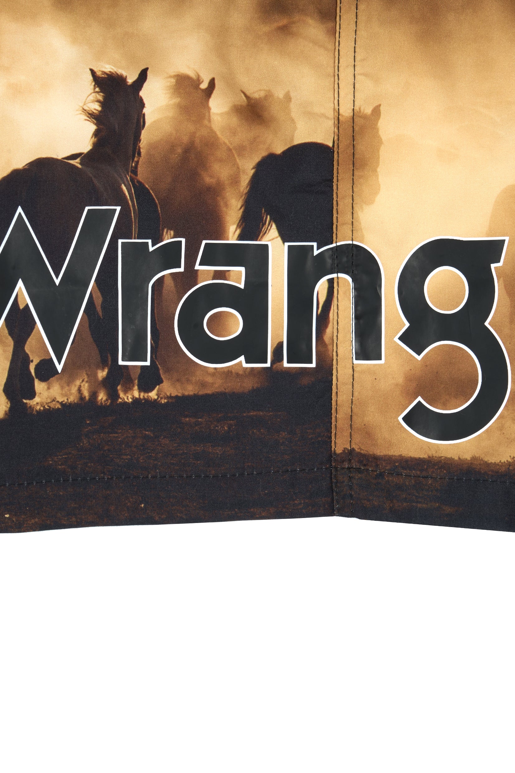 Board short with elasticated waist, drawcord tie with metal trims, back pocket with concealed metal snap closure and eyelets, Wrangler® iconic logo pocket label