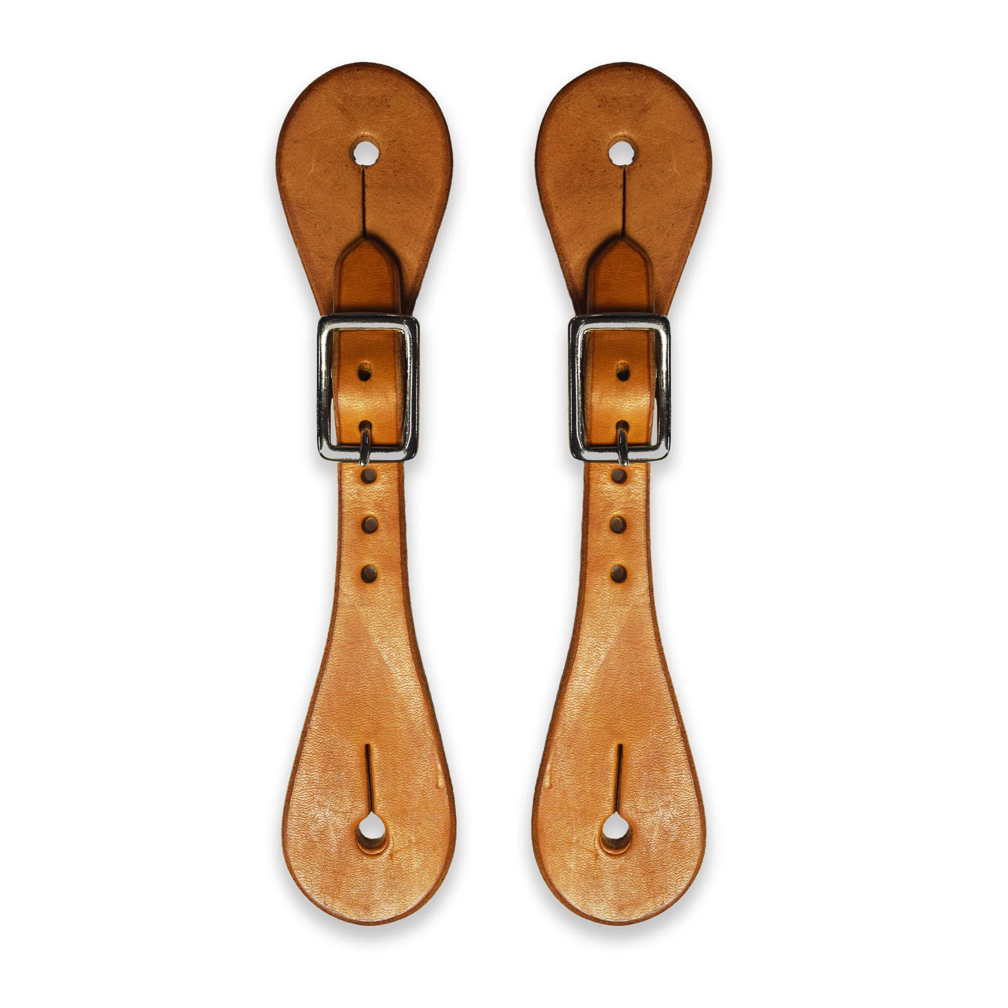 Ezy Ride spur strap straight. Stainless steel fittings, oiled harness leather. Natural harness.