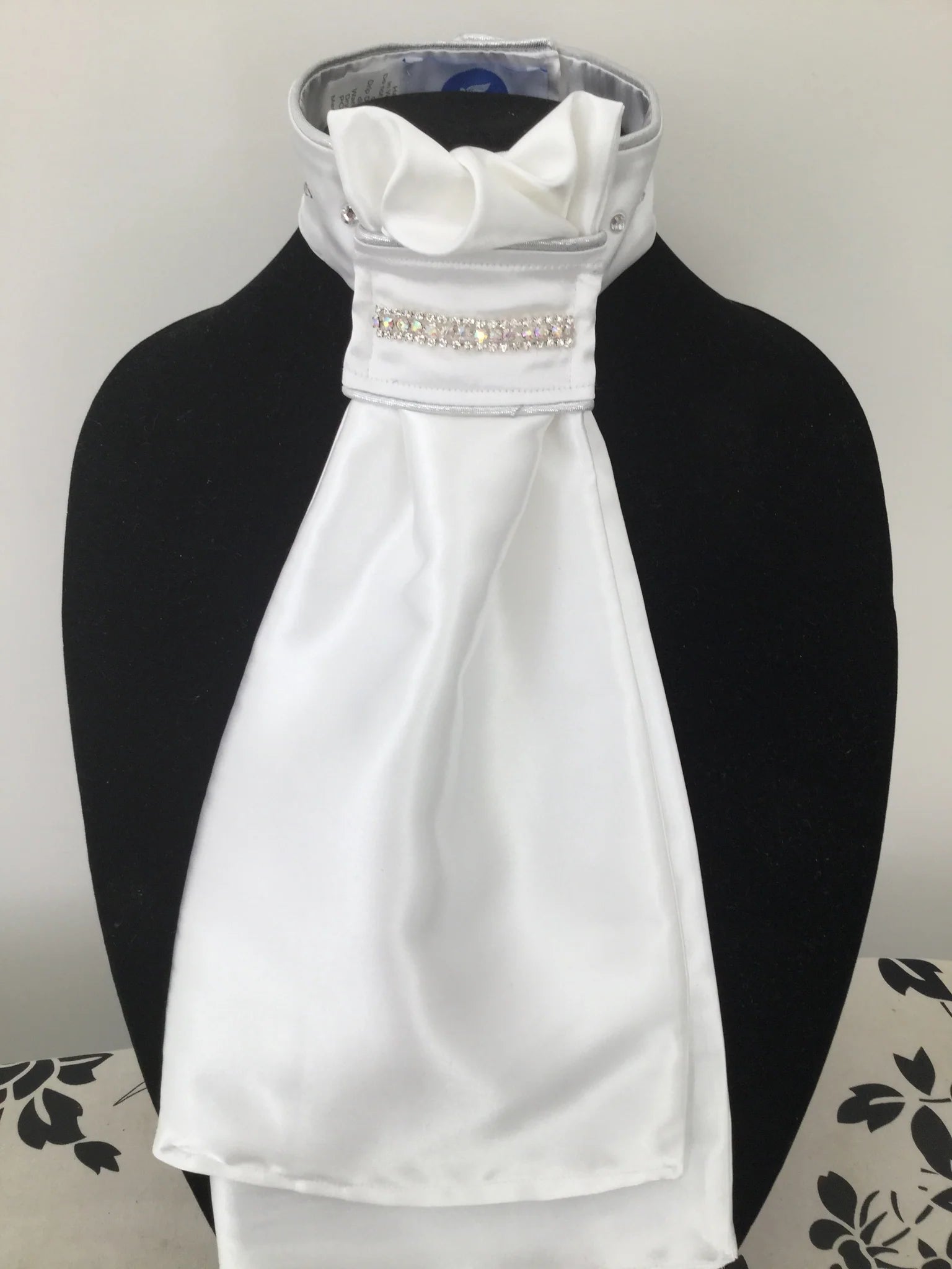 The HHD White Diamonds, a simple elegant Euro stock tie with a rhinestone trim silver piping and Swarovski Elements on the neckband.