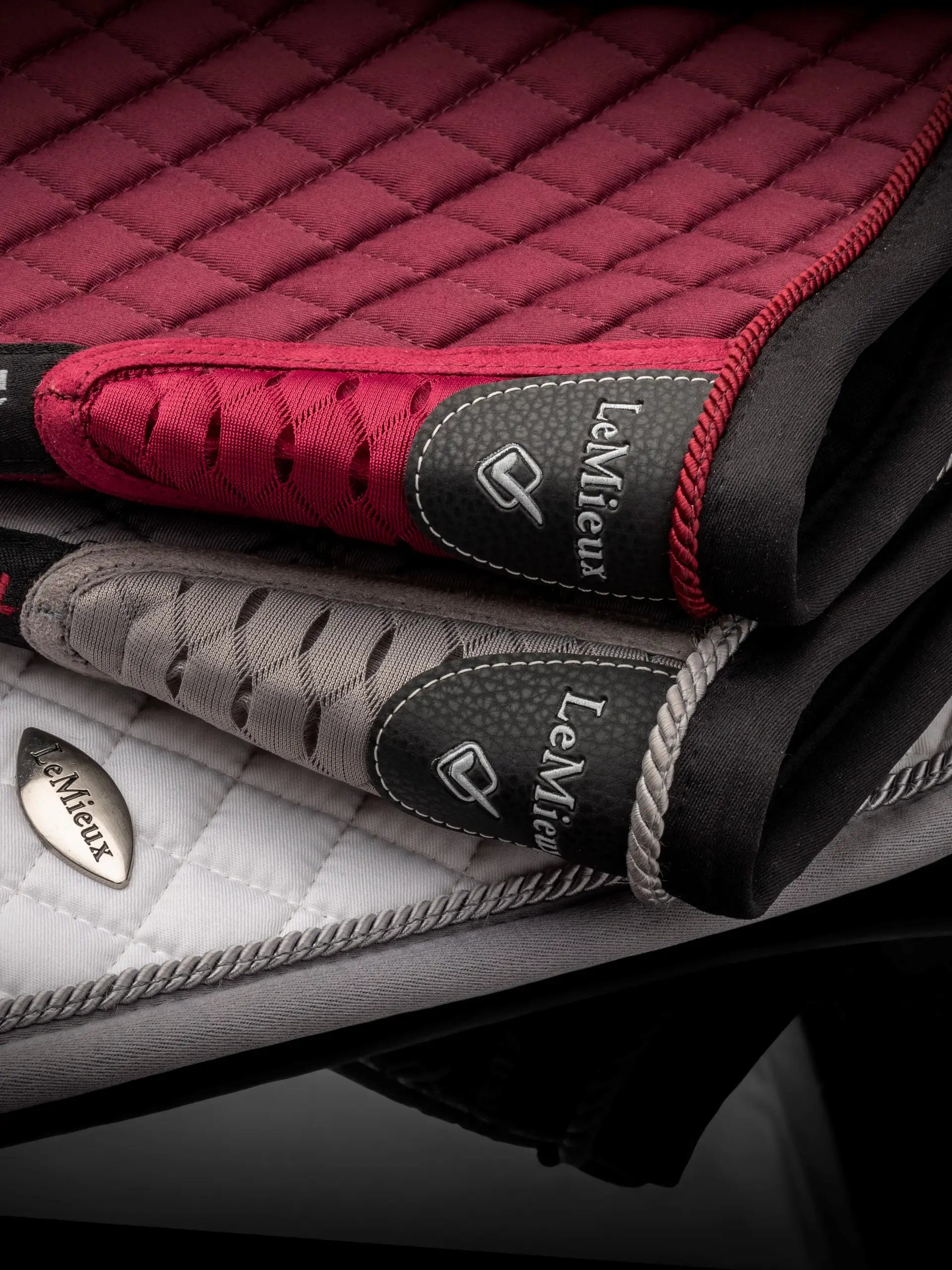 This pad also benefits from LeMieux's signature bamboo blend lining, with its high degree of breathability and antibacterial properties. The ultra-soft binding, outer braid and metal LeMieux motif make this a real statement saddle pad, whether in the ring or training.