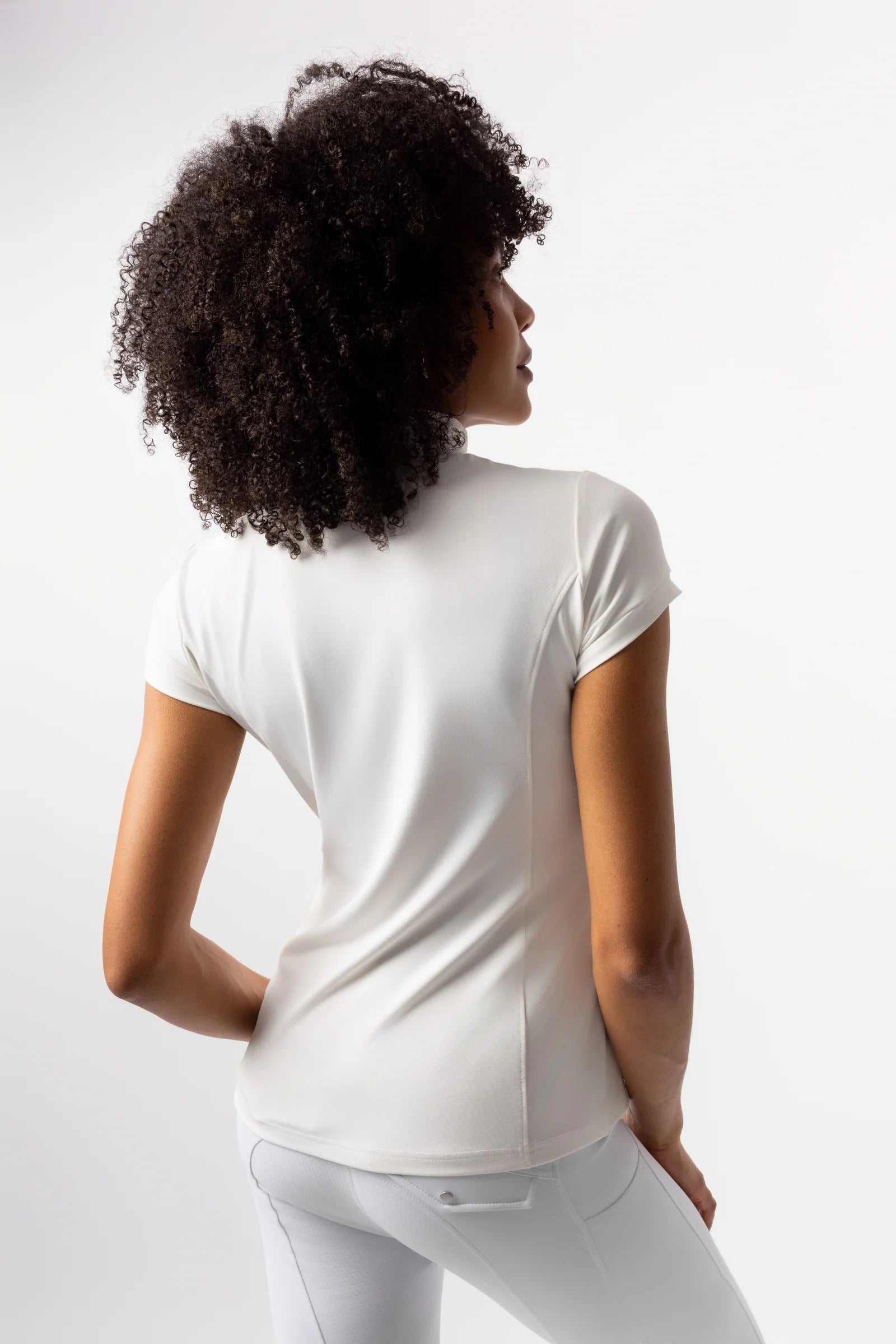 This women's training shirt combines sporty design with high functionality. The flattering front seams create a stylish and feminine silhouette. Made from breathable and stretchable fabric for maximum comfort and freedom of movement. The half zipper allows for easy temperature regulation. The functional material ensures moisture-wicking properties, making it ideal for training. Easy-care and quick-dry fabric for everyday use.