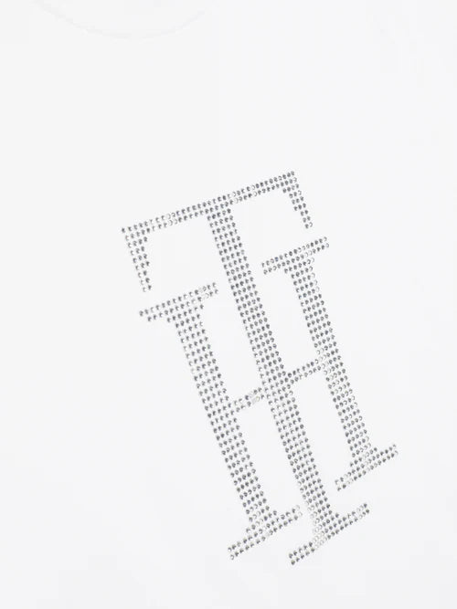 Short-sleeved T-shirt with a round neckline and large TH logo made of glittering rhinestones.