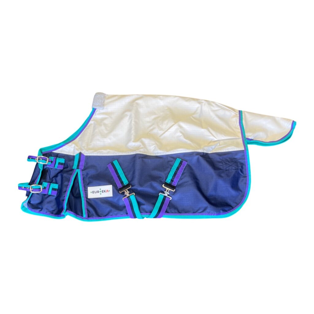 600 Denier waterproof outer rug with polyester cotton lining, satin shoulders plus short x -over double surcingles, double chest fittings, lined tail flap, rump darts, high shoulder gussets and removable leg straps.
