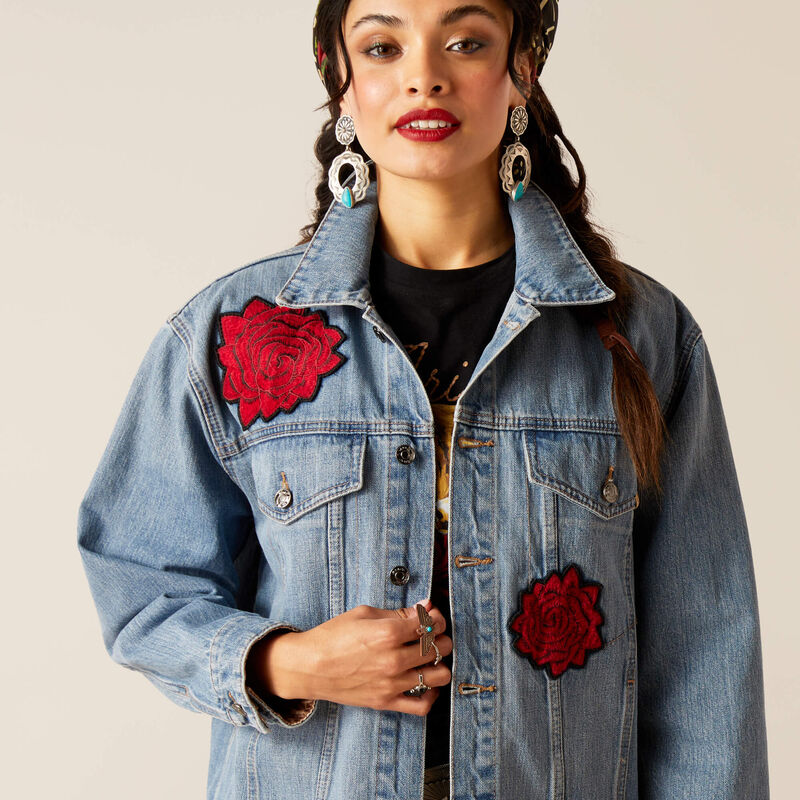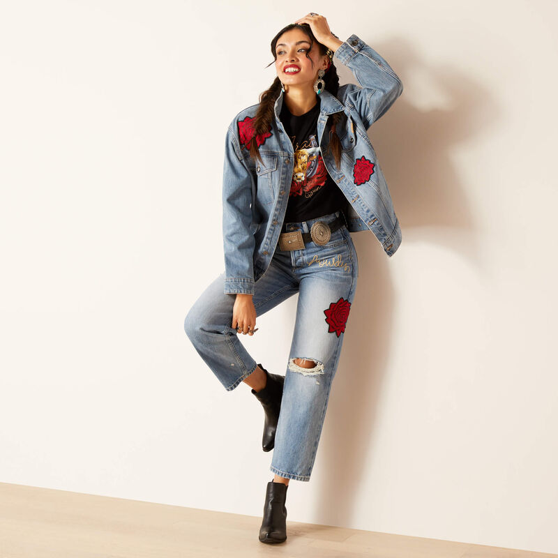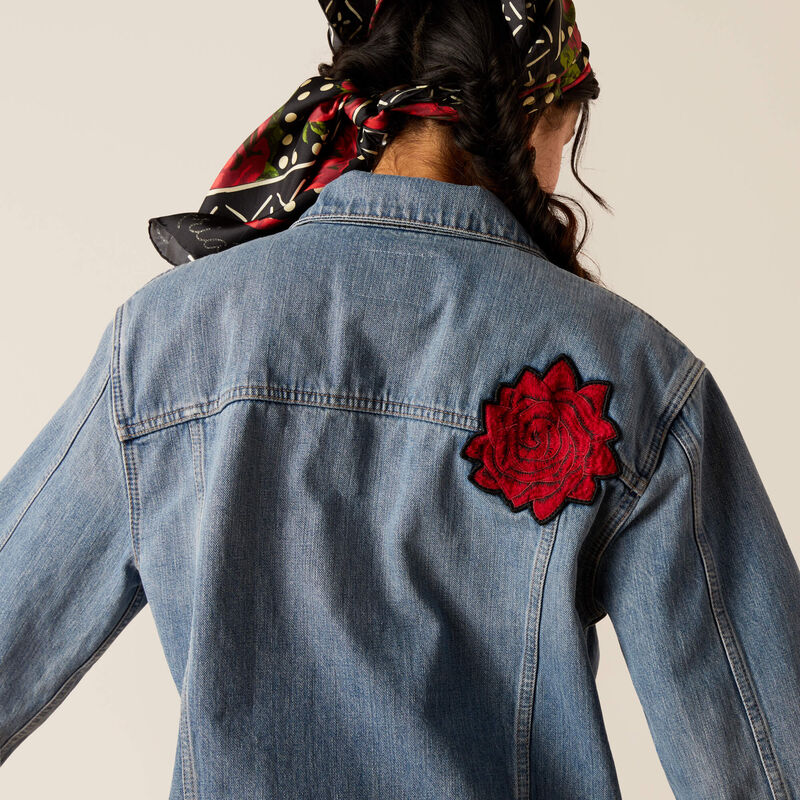 A bold update to a closet staple. Part of our limited-edition collection with Rodeo Quincy, this jacket pairs the classic trucker silhouette with the brand's iconic red roses. Fun detail alert: The cuffs and back yoke are lined with RQ's other favorite design element: leopard print.
