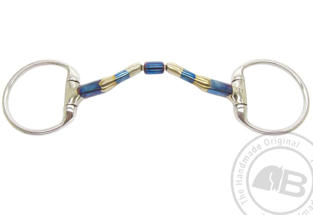 The Eggbutt cheek piece prevents pinching of the lips and gives a solid feel against the side of the face. It also prevents the bit being pulled through the mouth. The release is slower than the loose ring and also introduces light poll pressure. The port creates relief for the tongue while the barrel joint relieves pressure on the bars, while still allowing for individual lateral aids.