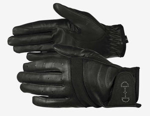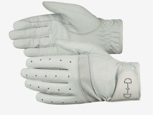 A tiny crystal D-ring snaffle is added to the back cuff of these lovely mesh gloves for a feminine touch. The leather includes a mesh back panel for ventilation on hot summer days. These gloves will form to your hands and offer great grip while you ride.