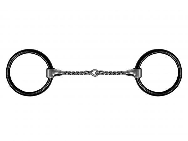 Showman ® Weighted loose ring stainless steel wire mouth bit. Mouth is 5" SS, O-rings measure 2.5" Black Iron.