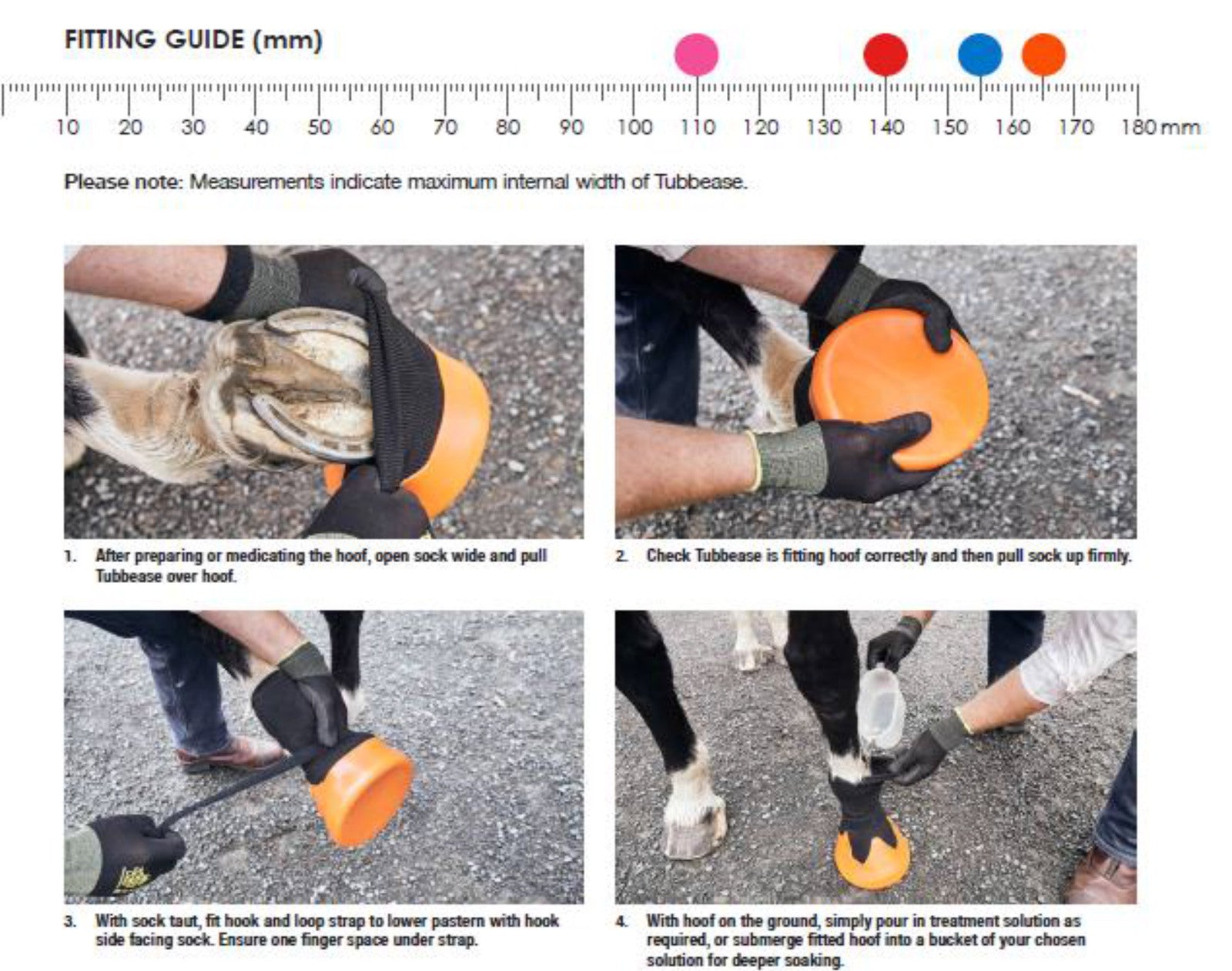 Important: Tubbease Hoof Socks are not enduring boots. They are for short-term use in confirmed enclosures by restrained animals. Judgement should be exercised.